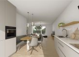 Een ruime geschakelde woning met op de begane grond een ruime entree met toiletruimte; vanuit de woonkamer heb je een vrij uitzicht over een brede groenstrook; de keuken is aan de tuinzijde gesitueerd en biedt voldoende ruimte voor een kookeiland en/of een hele grote eettafel. Verder is er een praktische bijkeuken.