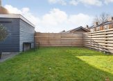 Vanuit de keuken stap je direct de diepe achtertuin in, waar je tot laat in de avond van de zon kunt genieten.