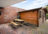 De fijne tuin aan de zijkant en achterkant van de woning is onderhoudsarm aangelegd. Aan de zijkant van de woning staat een ruime overkapping, waar voldoende plek is voor een comfortabele lounge set of een grote tuintafel. Vanaf het achter terras heb je een prachtig uitzicht over het water. De perfecte plek om te ontspannen en te genieten van de rustige, natuurlijke omgeving.