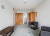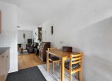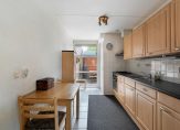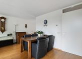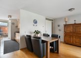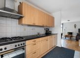 De woonkamer is gezellig ingedeeld en heeft aansluitend een half open keuken met inbouwapparatuur.