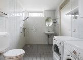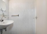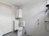 Hier bevindt zich de royale slaapkamer met terrasdeur en doorgang naar de badkamer. Dankzij de ruime opzet van de slaapkamer en de badkamer komt er veel daglicht binnen, wat zorgt voor een prettige sfeer. De badkamer heeft een 2e toilet en een douche, deze is geheel betegeld. Tevens vind je hier de witgoed aansluiting.
