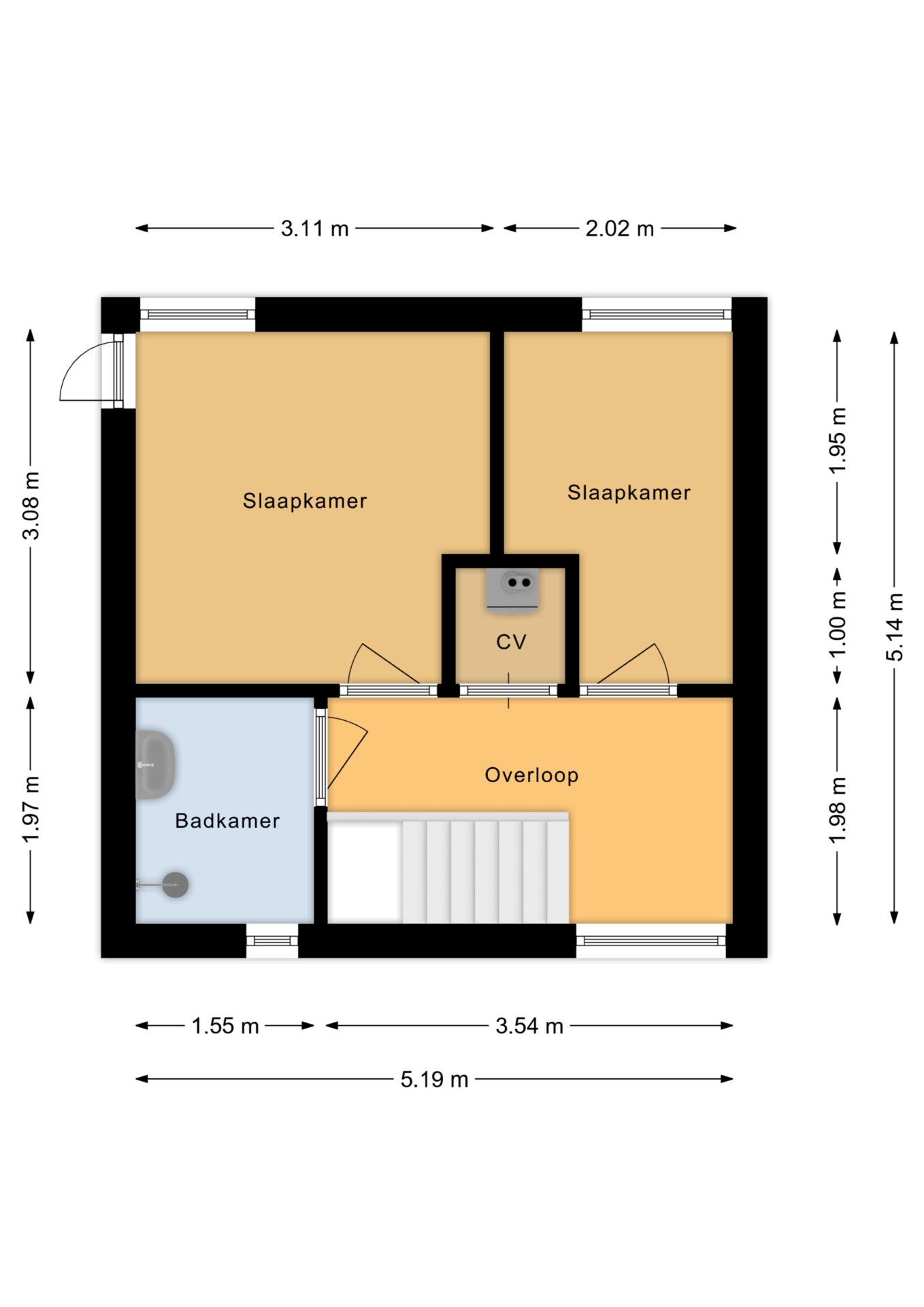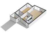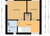 Met de vaste trap kom je op de verdieping met twee slaapkamers, een berging en een 2e badkamer met douche.