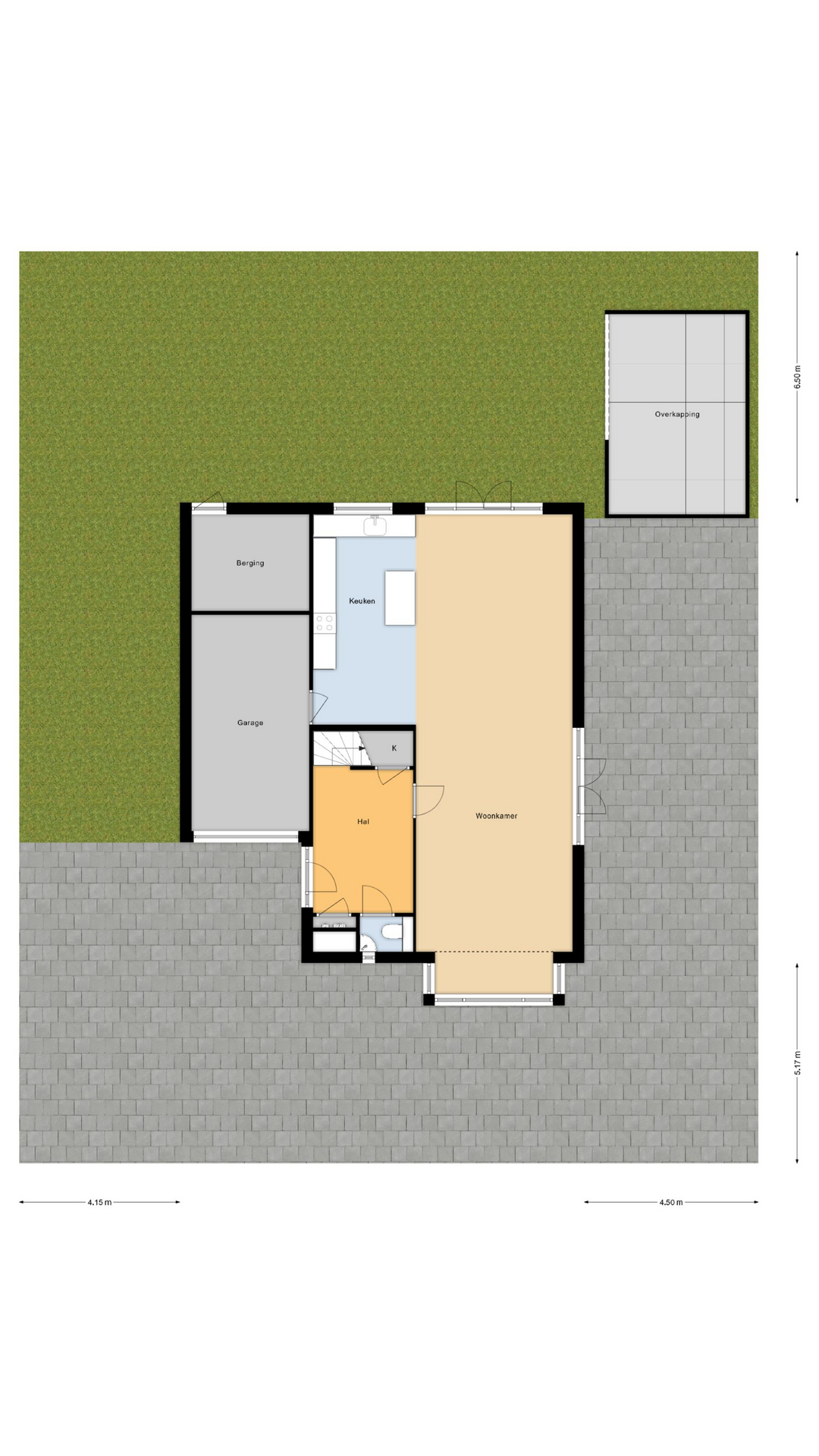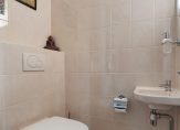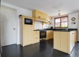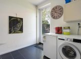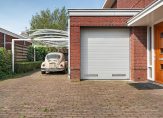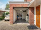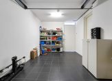 Vanuit de keuken komen we in de (in spouw gebouwde) garage en de doorgang naar de bijkeuken met de witgoedaansluitingen. De garage is voorzien van een plavuizen vloer en een elektrische deur.