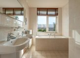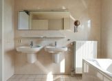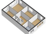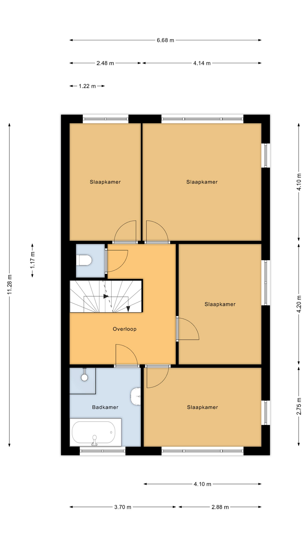 De overloop biedt toegang tot vier fijne slaapkamers waarvan er één in gebruik is als walk-in closet, een separaat toilet, en de badkamer. Alle slaapkamers hebben een raampartij en zijn voorzien van laminaat. De badkamer is netjes en heeft een ligbad, douche, en twee wastafels.