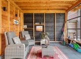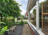 De woning heeft een tuin rondom, waarbij de achtertuin op het zuidoosten is gelegen. De tuin heeft groene hagen, grasstroken en een terras. De tuin is grotendeels omheind met een groene haag en biedt verschillende plekken om heerlijk van de zon of de schaduw te genieten. Er is een ruime overkapping waardoor je ook op de minder mooie dagen nog steeds lekker buiten kunt zitten.