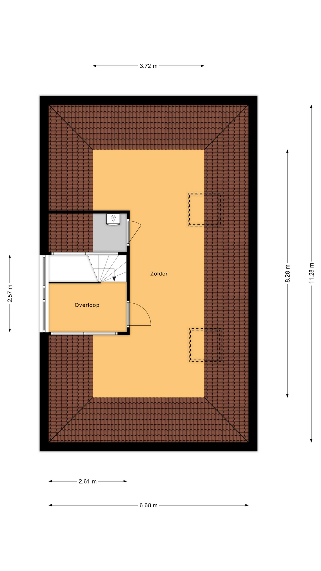 Via een vaste trap kom je op de ruime zolder, die ideaal is als extra werk- en/of 5e slaapkamer. De verdieping is neutraal afgewerkt en heeft twee Velux dakramen.