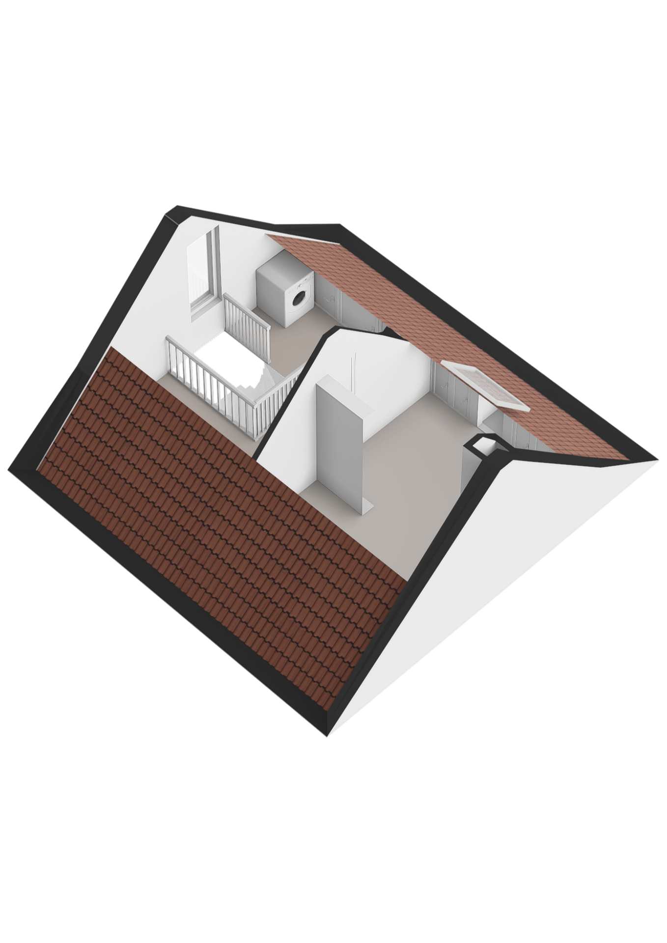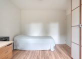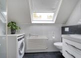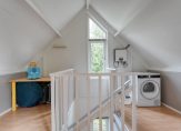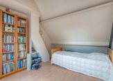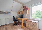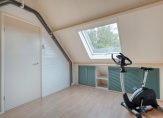 De tweede verdieping beschikt over een overloop met cv-opstelling en omvormer voor de zonnepanelen, praktische knieschotten met extra bergruimte en een ruime vierde slaapkamer met een groot dakraam.