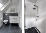 Op de eerste verdieping bevindt zich de overloop met inbouwkast en drie ruime slaapkamers, waarvan twee met dakkapel. Eén slaapkamer beschikt over een kastenwand en een andere over een wastafel. De moderne badkamer is voorzien van een inloopdouche, hangtoilet, wastafelmeubel en wasmachineaansluiting.