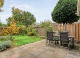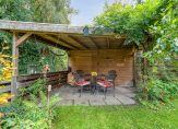 De tuin grenst aan een groene strook met hoge bomen en een sloot, waardoor je hier volop privacy en rust ervaart. Hier geniet je van lange zomerdagen, fluitende vogels en een gevoel van vrijheid alsof je midden in de natuur bent.
