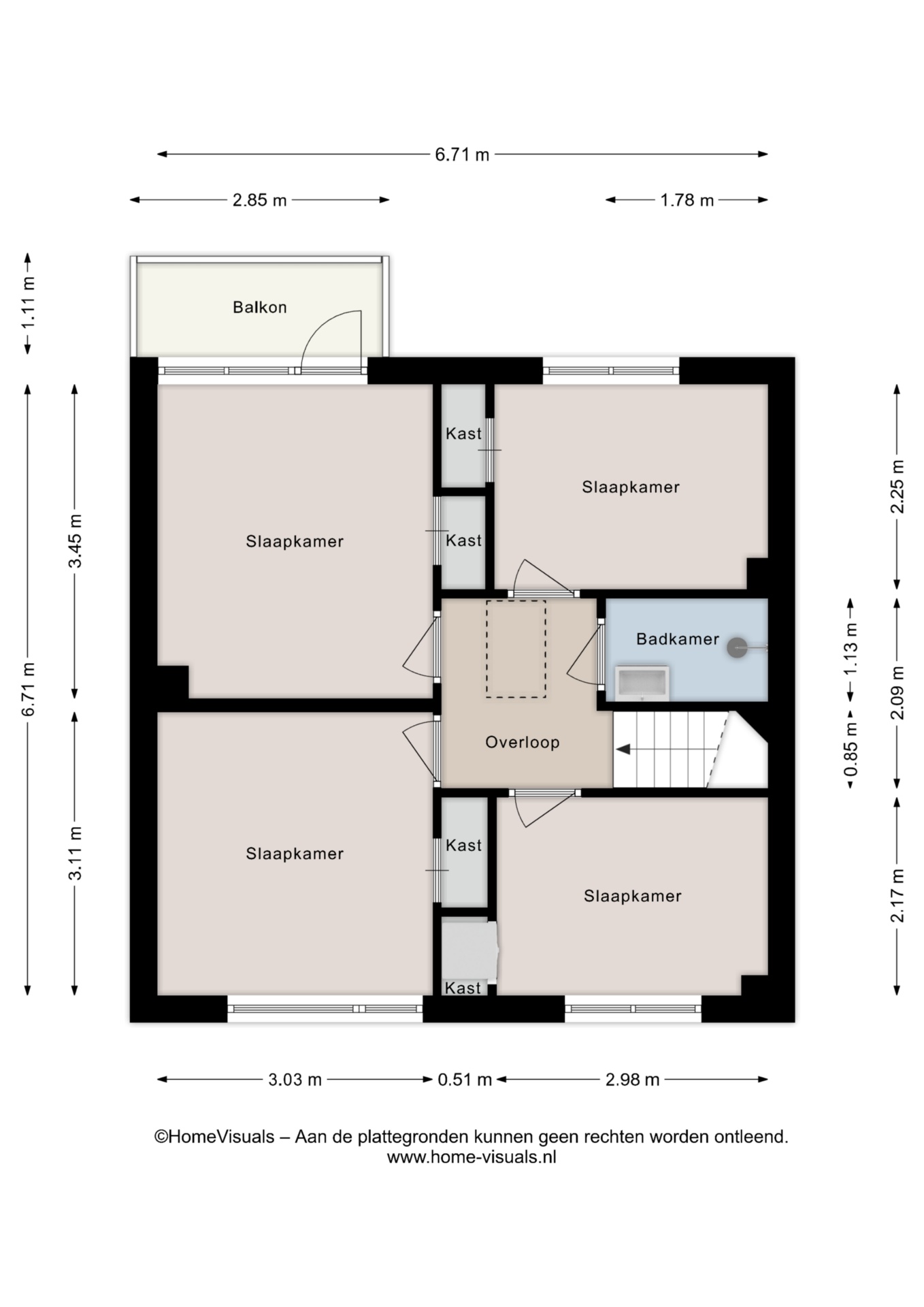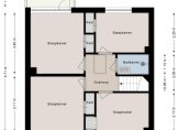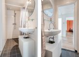 Overloop, 4 slaapkamers, waarvan de grootste met toegang tot het balkon. Badkamer met douche en wastafel.