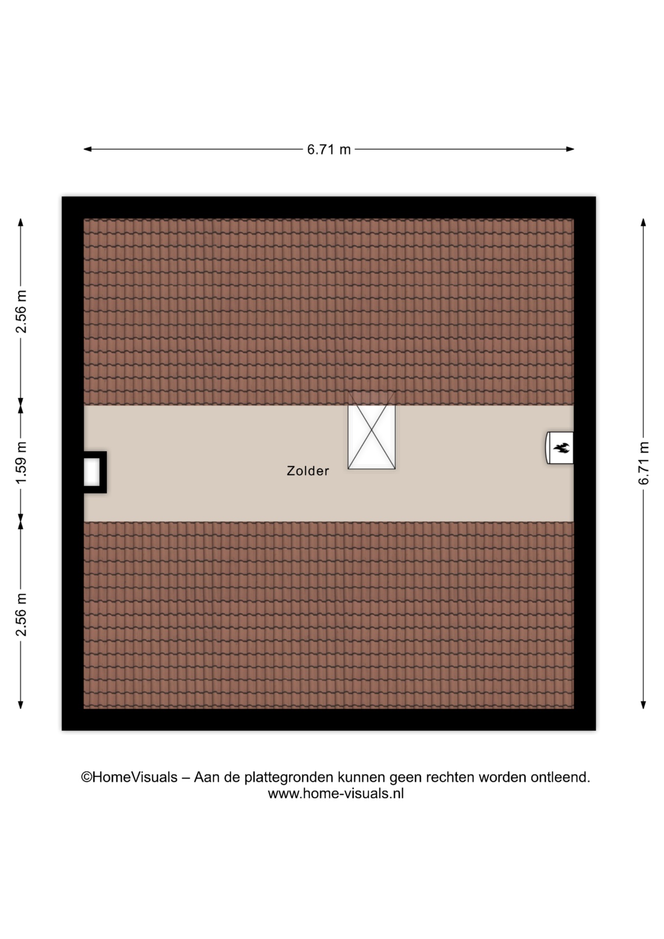 Via vlizotrap bereikbare, ruime zolderberging met c.v.-opstelling.