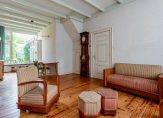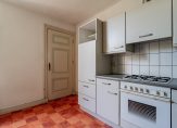 Via de fraaie entree komen we binnen in een royale, sfeervolle woonkamer met fraai balkenplafond haardpartij, aansluitend de half open keuken met eenvoudige inrichting, via de achter entree komen we bij het toilet en de badkamer met douche en wastafel, hier is ook de wasmachineaansluiting. Boven de badkamer is nog een mooie bergzolder die vanaf buitentoegankelijk is.