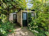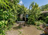 Via de achter entree komen we in de mooie diepe tuin, doordat er achter de tuin geen woningen gelegen zijn heb je hier alle privacy. De tuin is gesitueerd op het oosten dus als de zon schijnt is hier altijd een plekje te vinden waar je van de zon kunt genieten of waar je in de zomer lekker in de schaduw kunt zitten. Achter in de tuin staat een dubbele garage, dus volop klus- of bergruimte en nooit zorgen of je je auto wel ergens kwijt kan.