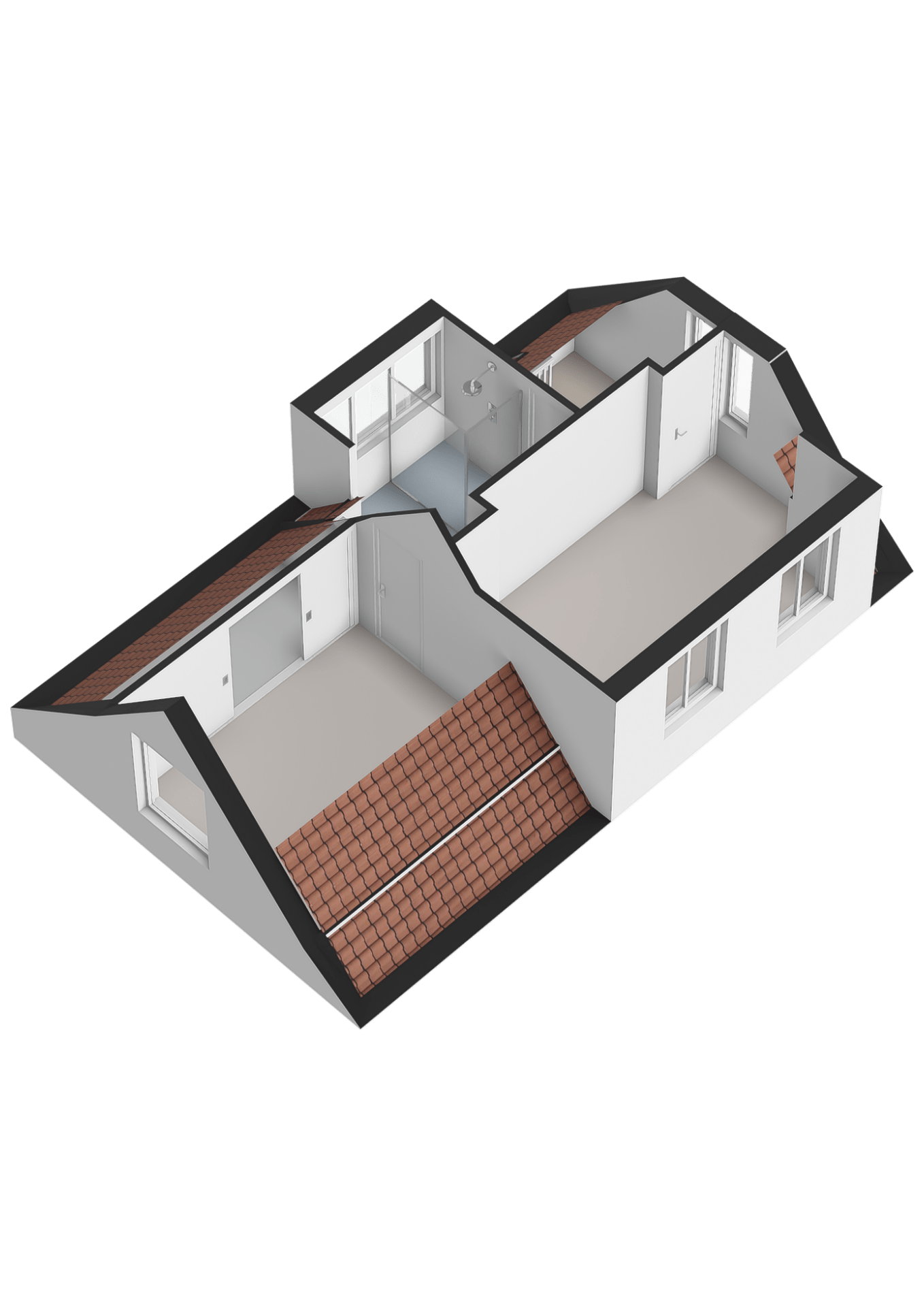 Op de verdieping vind je een overloop, twee slaapkamers en een nette badkamer, die is uitgerust met een douche, wastafelmeubel en toilet. Ook hier vind je natuurlijke ventilatie en HR-beglazing voor comfort én energiebesparing.