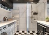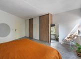 Entree met de royale hal, meterkast, CV kast, grote kastenwand en toegang tot de ruime slaapkamer die eveneens beschikt over een grote vaste kastenwand. Verderop bevindt zich het toilet met fontein en de badkamer welke is voorzien van inloopdouche met glazen deur, wastafelmeubel evengoed als de witgoed aansluiting.