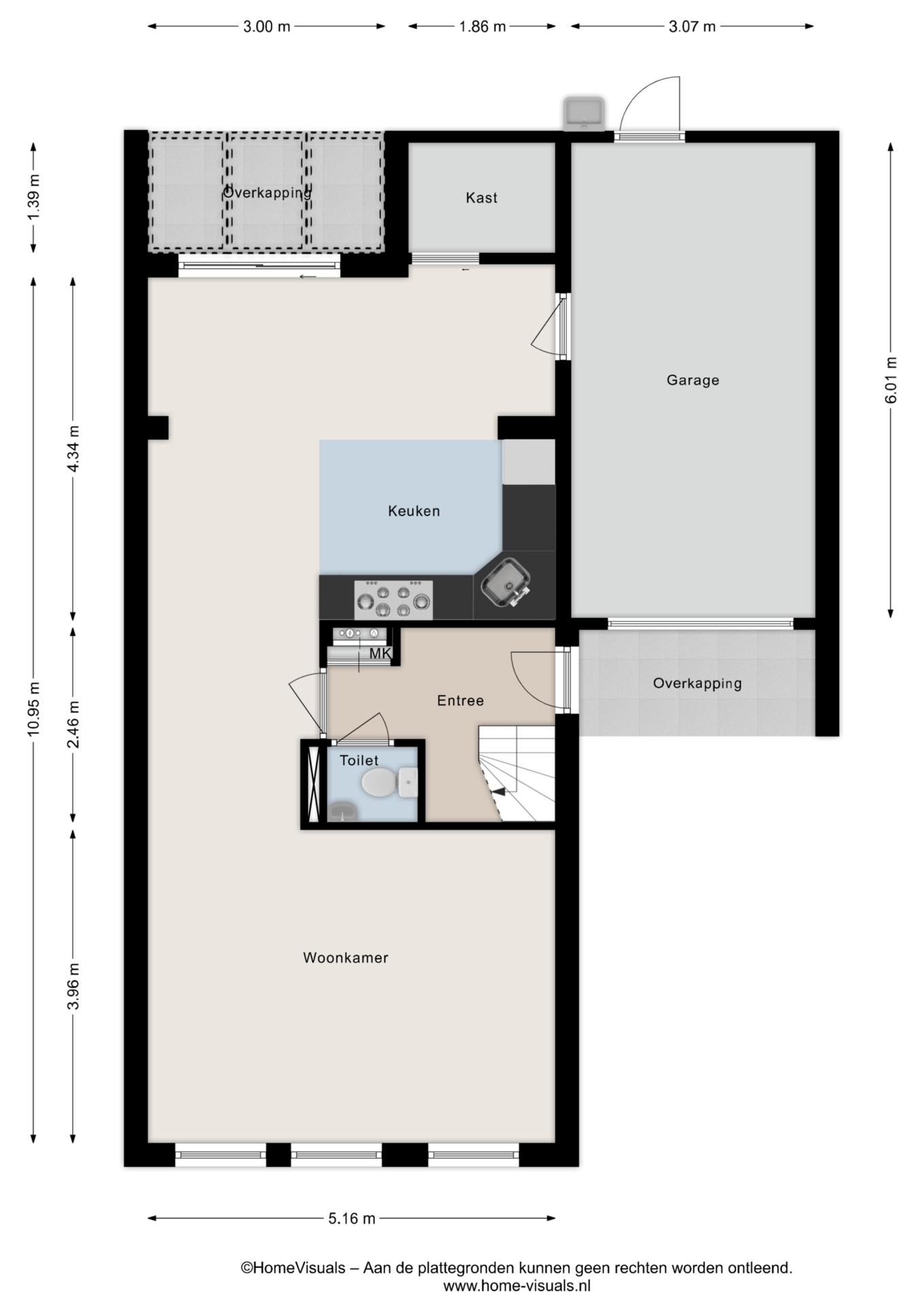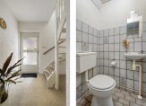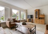 Ruime entree met trapopgang en toilet. Lichte L-vormige woonkamer met grote ramen en prettig uitzicht op de straatzijde. De tuingerichte woonkeuken is vergroot door een uitbouw en voorzien van een gaskookplaat, oven, magnetron, vaatwasser en spoelbak. Daarnaast is er een overdekt zitje aansluitend aan de woonkeuken, deze is via de schuifpui bereikbaar. Vanuit de keuken is er toegang tot de bijkeuken met witgoedaansluitingen en doorgang naar de garage.