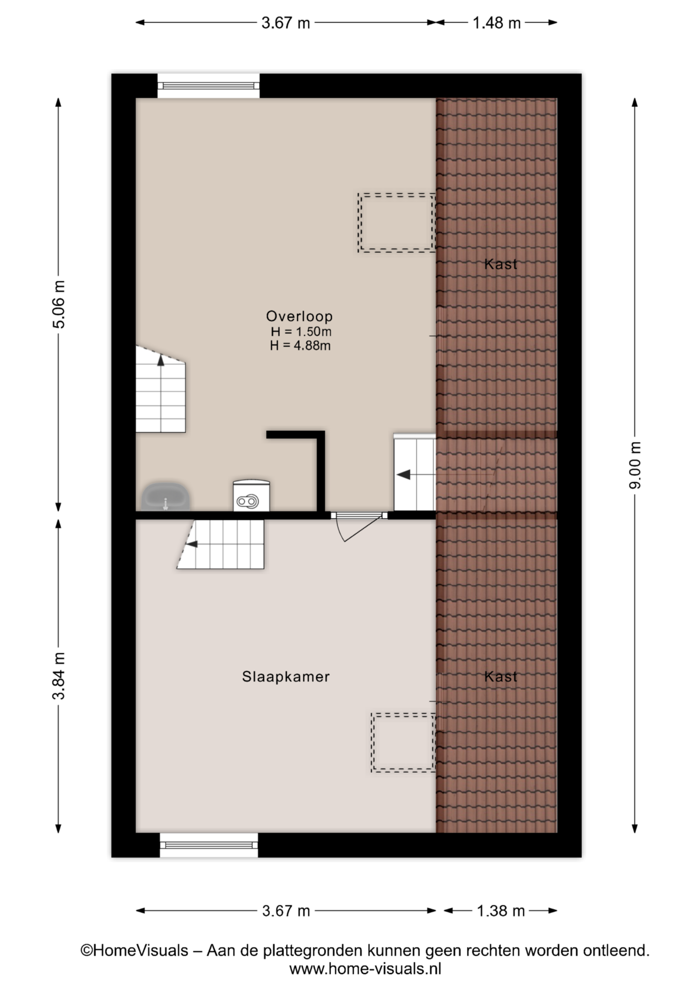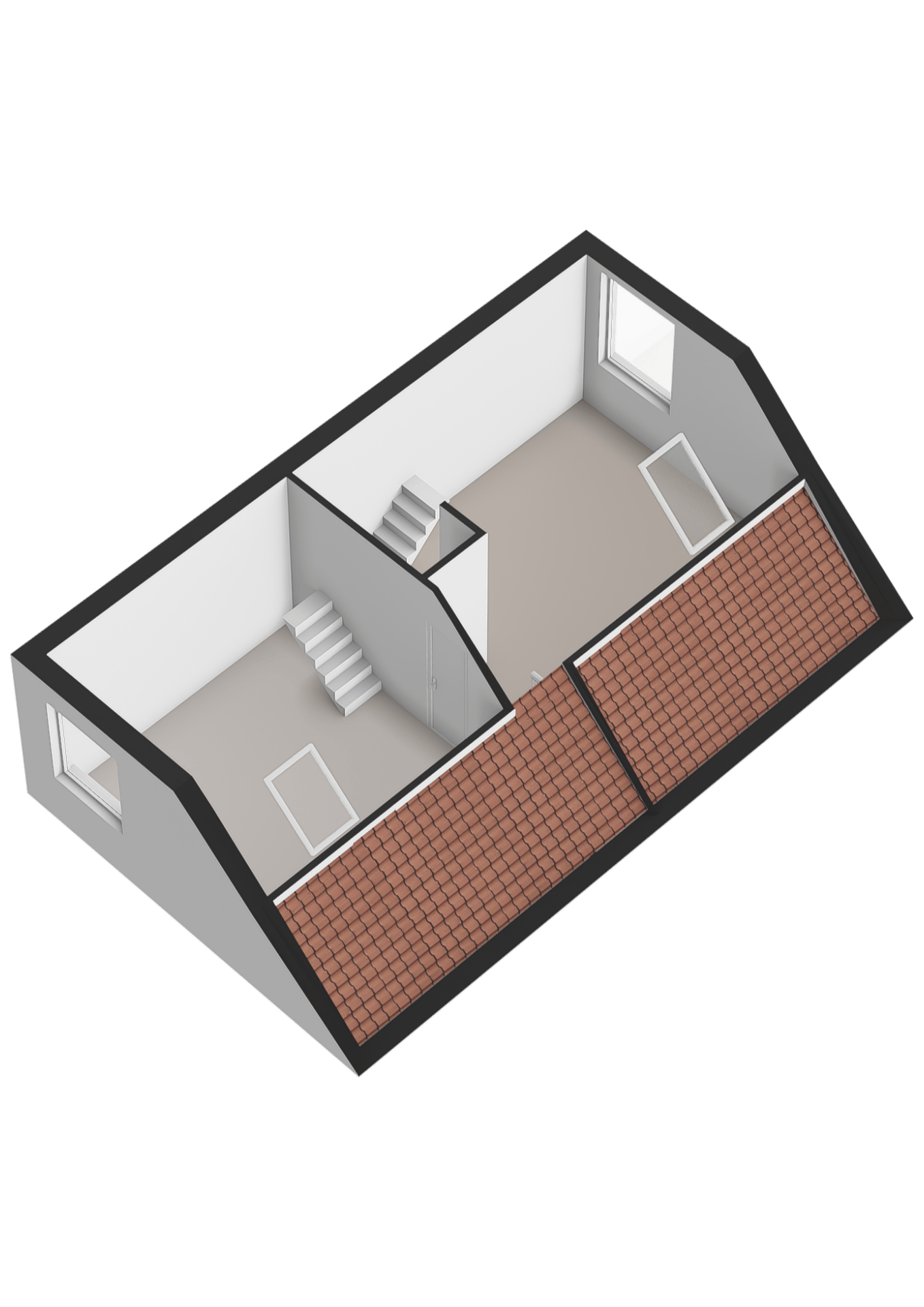 Vaste trap naar de zolder met twee slaapkamers, beide met dakramen. Eén kamer heeft een gezellige slaapzolder en de andere biedt extra bergruimte en de stookruimte.