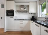 De open keuken is uitgerust met een vaatwasser, combi-magnetron, koelkast, vriezer, 5-pits gaskookplaat en afzuigschouw. Daarnaast heeft de woonkamer nog een praktische provisieruimte.
