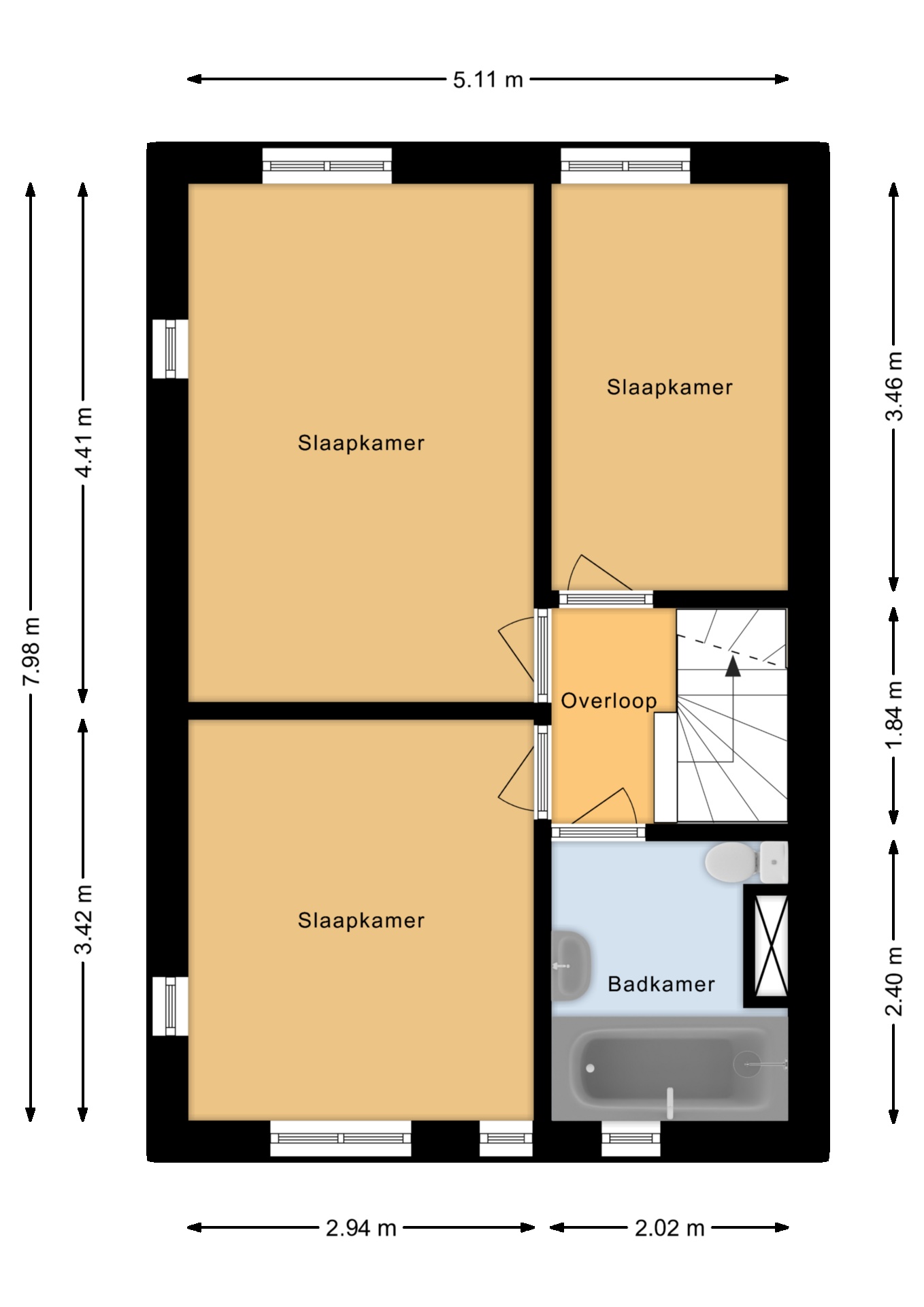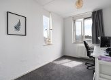 De overloop leidt naar drie ruime slaapkamers met laminaatvloeren. De moderne badkamer biedt een bad-/douchecombinatie, toilet en wastafelmeubel.