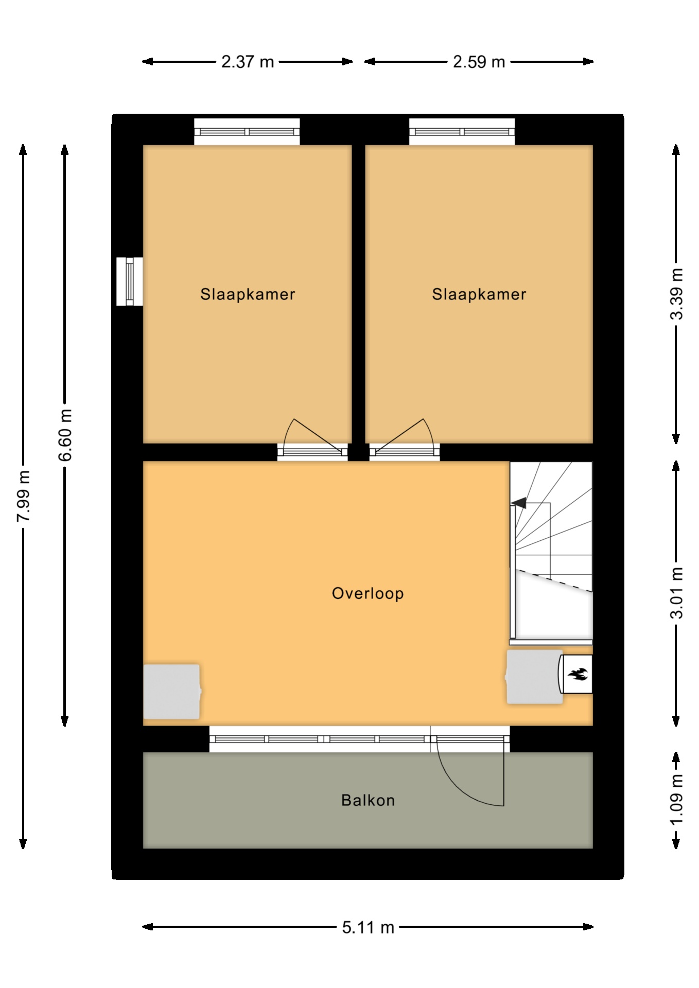 Op de zolder vind je een overloop met wasruimte en twee extra slaapkamers, met als extraatje een prachtig balkon over de volle breedte van de woning.