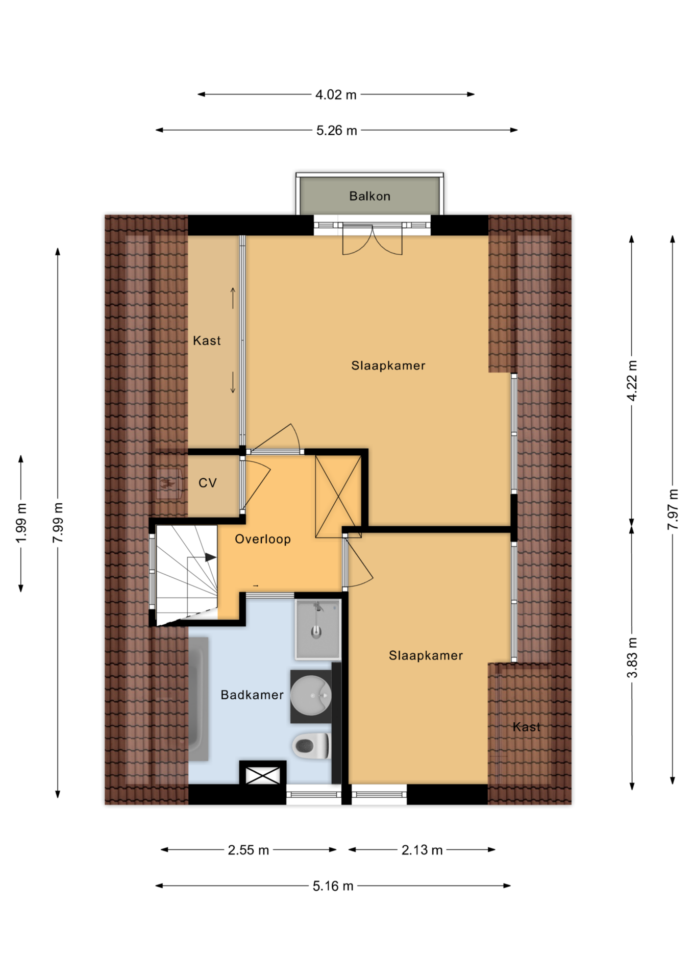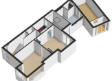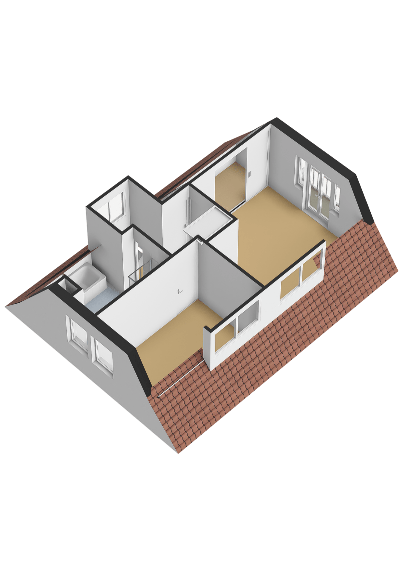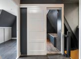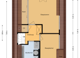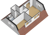 De tweede verdieping is bereikbaar middels een vrij steile trap en biedt voldoende ruimte voor een extra (slaap)kamer en een heleboel bergruimte.