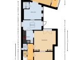 Via de prachtige entree met toiletruimte en trapkast komen we in de woonkamer-en-suite met prachtig vrij uitzicht over de gracht. De erker met glas-in-lood ramen, schouw, suitedeuren en openslaande tuindeuren naar de zonnige stadstuin maken het sfeervolle plaatje helemaal compleet. De keuken is in 2019 vernieuwd en voorzien van de gebruikelijke inbouwapparatuur. Verder vinden we op de begane grond een bijkeuken met achter entree en witgoedaansluitingen; de voormalige garage is verbouwd tot kantoor/werkruimte en voorzien van toiletruimte.