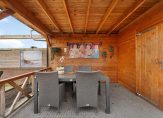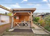De voortuin is leuk aangelegd maar biedt ook de mogelijkheid van het parkeren op eigen terrein. De achtertuin grenst aan het Mandemakersbos, heeft vrij uitzicht en een gezellige overkapping (2022) waar je kunt genieten van het buitenleven. De tuin ligt op het noordoosten en heeft een stenen berging. Door de diepte van de tuin is er altijd wel een plekje in de zon of in de schaduw te vinden.