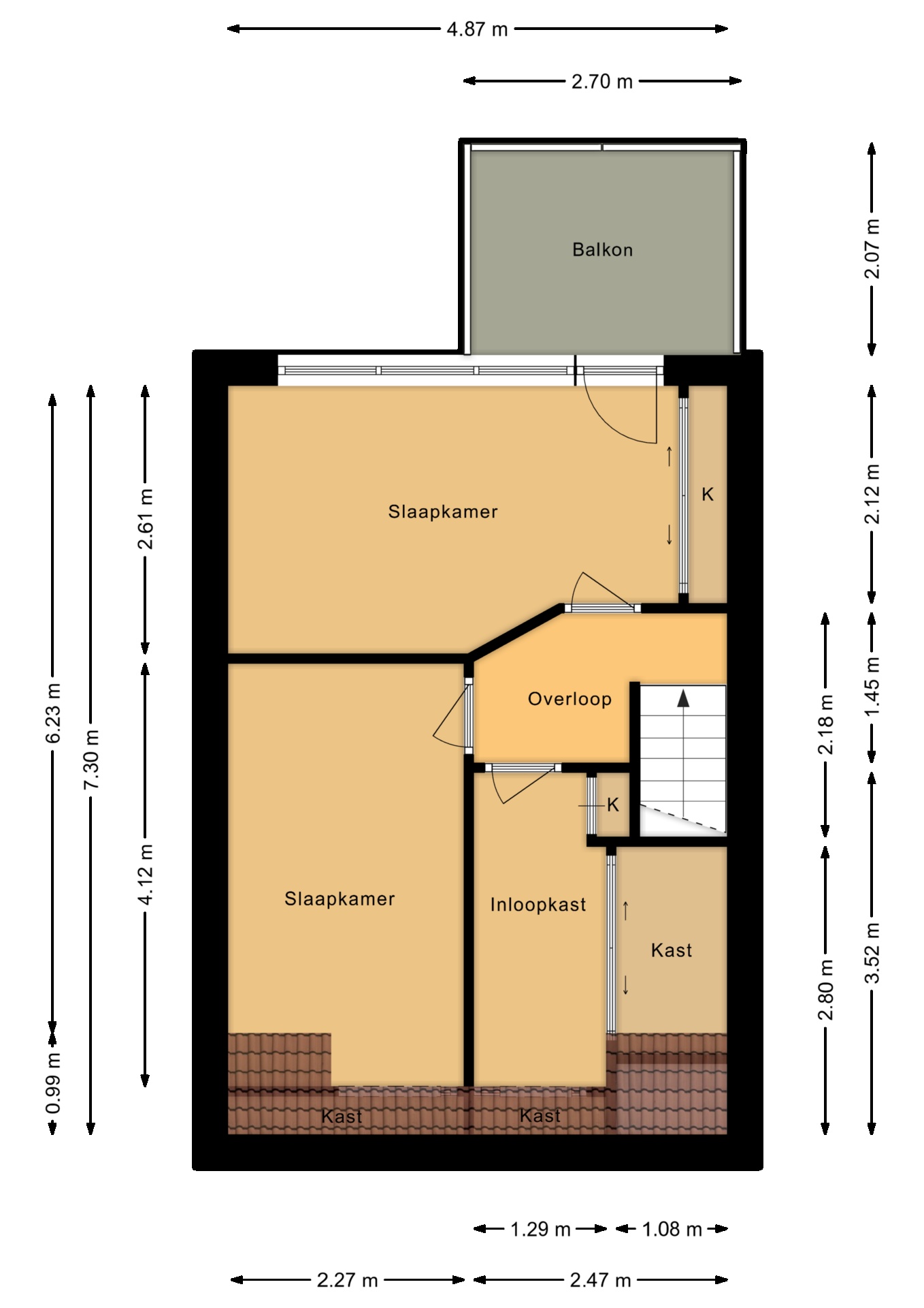 Op de verdieping zijn twee mooie slaapkamers met vaste kasten waarvan één met toegang tot het dakterras.