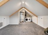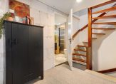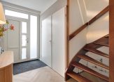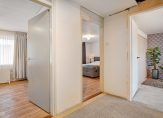 Ook de tweede verdieping is ruim, hier is een overloop met CV opstelling en de nodige bergruimte, verder een mooie vierde slaapkamer. Het trappenhuis is afsluitbaar van de verdieping met een moderne glazendeur in zwart stalen frame.