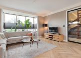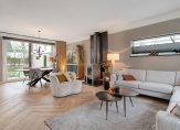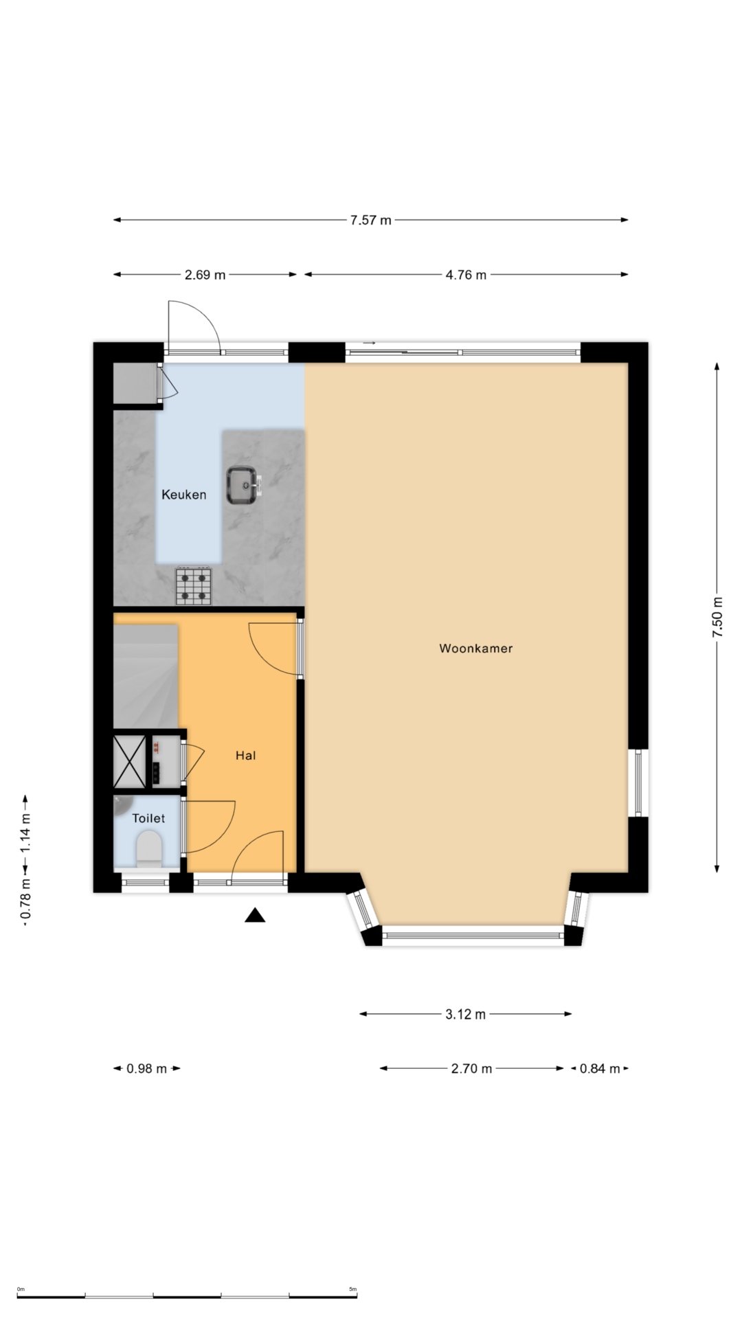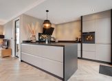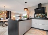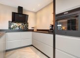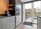 Bij binnenkomst valt op dat de woning mooi breed is wel 7.57m, via de hal met toilet en meterkast komen we in de ruime en lichte woonkamer. De woonkamer heeft een visgraatvloer met vloerverwarming en een gezellige houtkachel. Dankzij de schuifpui heb je mooi zicht op de tuin. De erker zorgt voor uitstraling, licht en ruimte. De mooie half openkeuken heeft ook een toegangsdeur tot de tuin en is luxe uitgerust met een inductie kookplaat, cooker en allerlei apparatuur.