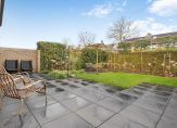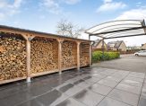 Achter de woning ligt een mooie tuin met veel privacy, gesitueerd op het zuiden dus volop zon. De woonkamer en de keuken zijn daarom ook voorzien van een groot zonnescherm. Aan de achterzijde van de kavel en langs de oprit staat een flinke houtstek, voorlopig zit je er warmpjes bij. De vrijstaande garage is ook al royaal te noemen en voorzien van een elektrische deur en een carport. De voortuin is onderhoudsarm en keurig bestraat. Aan de achterzijde zit je heel vrij en aan de voorzijde is een ruime parkeerplaats.