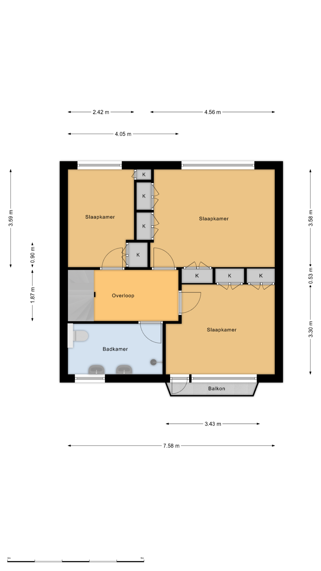 Op de eerste verdieping vinden we drie ruime slaapkamers met vaste kasten, waarvan één met toegang tot het balkon. De badkamer is geheel gemoderniseerd en heeft een luxe inloopdouche, elektrische vloerwarming, een wastafel meubel en een tweede toilet.