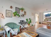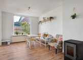 Bij aankomst word je verwelkomd door een zonnige, knusse voortuin. De ruime en lichte woonkamer straalt sfeer uit met een stijlvolle pelletkachel en een mooie, warme kleur op de muur.