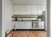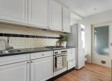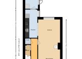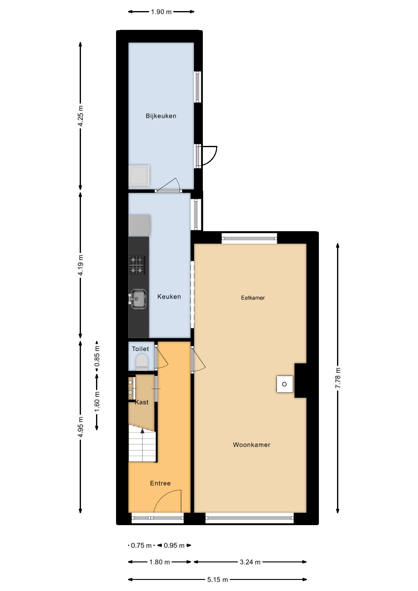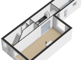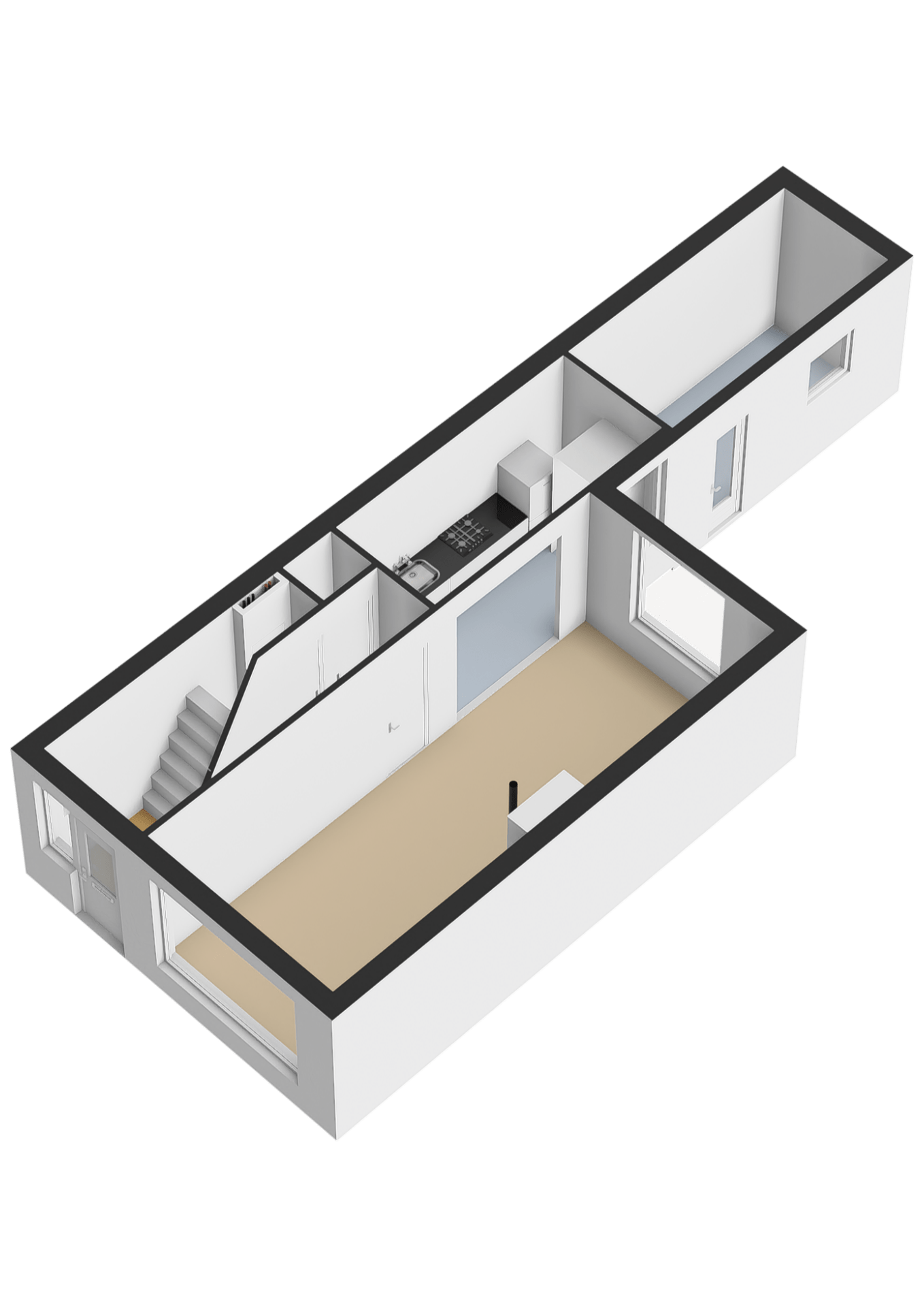 Aan de achterzijde van de woning bevindt zich de keuken, eenvoudig maar voorzien van alles wat je nodig hebt: een oven, 4-pits gaskookstel en volop bergruimte. De open verbinding met de eetruimte maakt het een fijne plek voor gezellige maaltijden. Aangrenzend vind je de praktische berging/bijkeuken, ideaal voor de wasmachine, droger en zelfs de fiets.