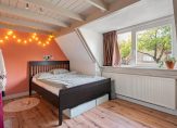 Op de eerste verdieping trekken de originele paneeldeuren en de karakteristieke balkenpartij meteen de aandacht. De twee royale slaapkamers bieden genoeg ruimte voor een tweepersoonsbed. De badkamer is ruim en voorzien van een douche, wastafelmeubel en een ligbad. Via een vaste trap kom je op de zolder, die in 2018 netjes is verbouwd en perfect kan dienen als extra slaapkamer.