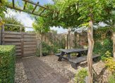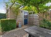 De tuin is een ideale plek om te ontspannen en te genieten van het buitenleven. Gelegen op het noordwesten, vangt de tuin de hele dag zonlicht, wat het een heerlijke plek maakt om te vertoeven. De combinatie van groen en tegels zorgt voor een praktische en aantrekkelijke buitenruimte. Hierdoor kun je het hele jaar comfortabel zitten, ongeacht het weer. Of je nu een gezellige avond met vrienden plant of een rustige middag voor jezelf wilt, deze tuin biedt alle mogelijkheden. Verder staat er een schuurtje voor tuingereedschap en fietsen, handig bereikbaar via een achterom.