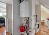 Nog een verdieping hoger is de overloop waar plek is voor de wasmachine en bergruimte aanwezig is. Er is hier ook nog een vierde en vijfde slaapkamer gerealiseerd.