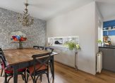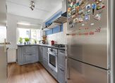 De dichte keuken ligt aan de voorkant van het huis en heeft een fijne voorraadkast onder de trap. Aansluitend aan de keuken vind je de eetkamer, een super gezellige ruimte om met elkaar te eten, spelletjes te doen of te knutselen.