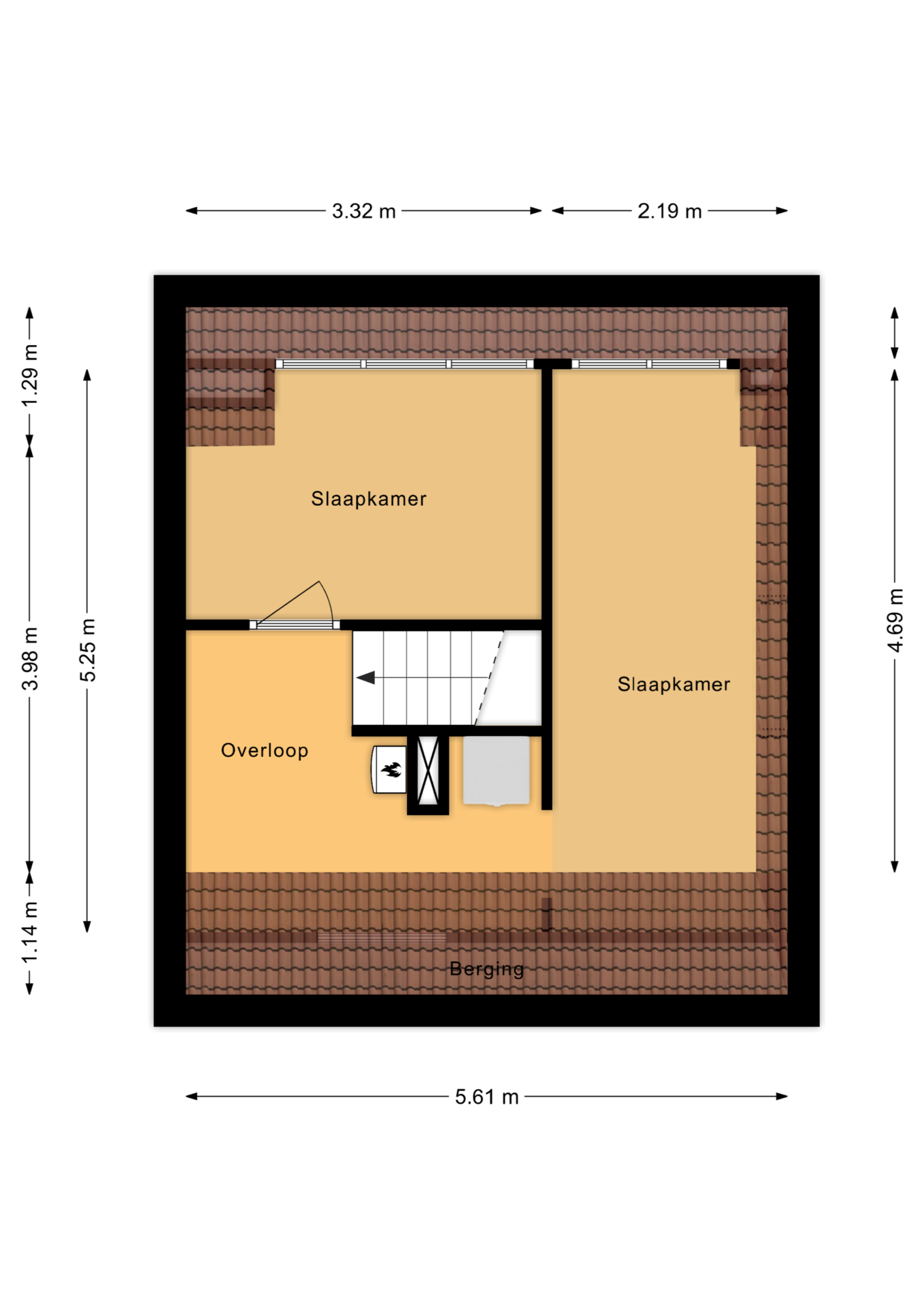 Bergzolder, deze is bereikbaar via een vlizotrap.