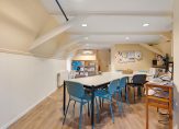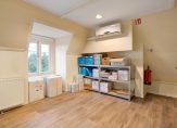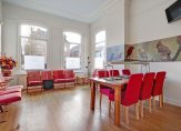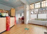 De hoge plafonds en de grote raampartijen zorgen voor veel lichtinval, wat voor een prettige, zonnige en open sfeer zorgt. De karakteristieke elementen geven het geheel een warme en exclusieve uitstraling.