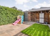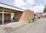 Achtertuin op het oosten met achterom en een carport op eigen terrein. Vrijstaande stenen berging met elektra. Ligging aan een rustige weg, op loop-/fietsafstand van het centrum en het station.