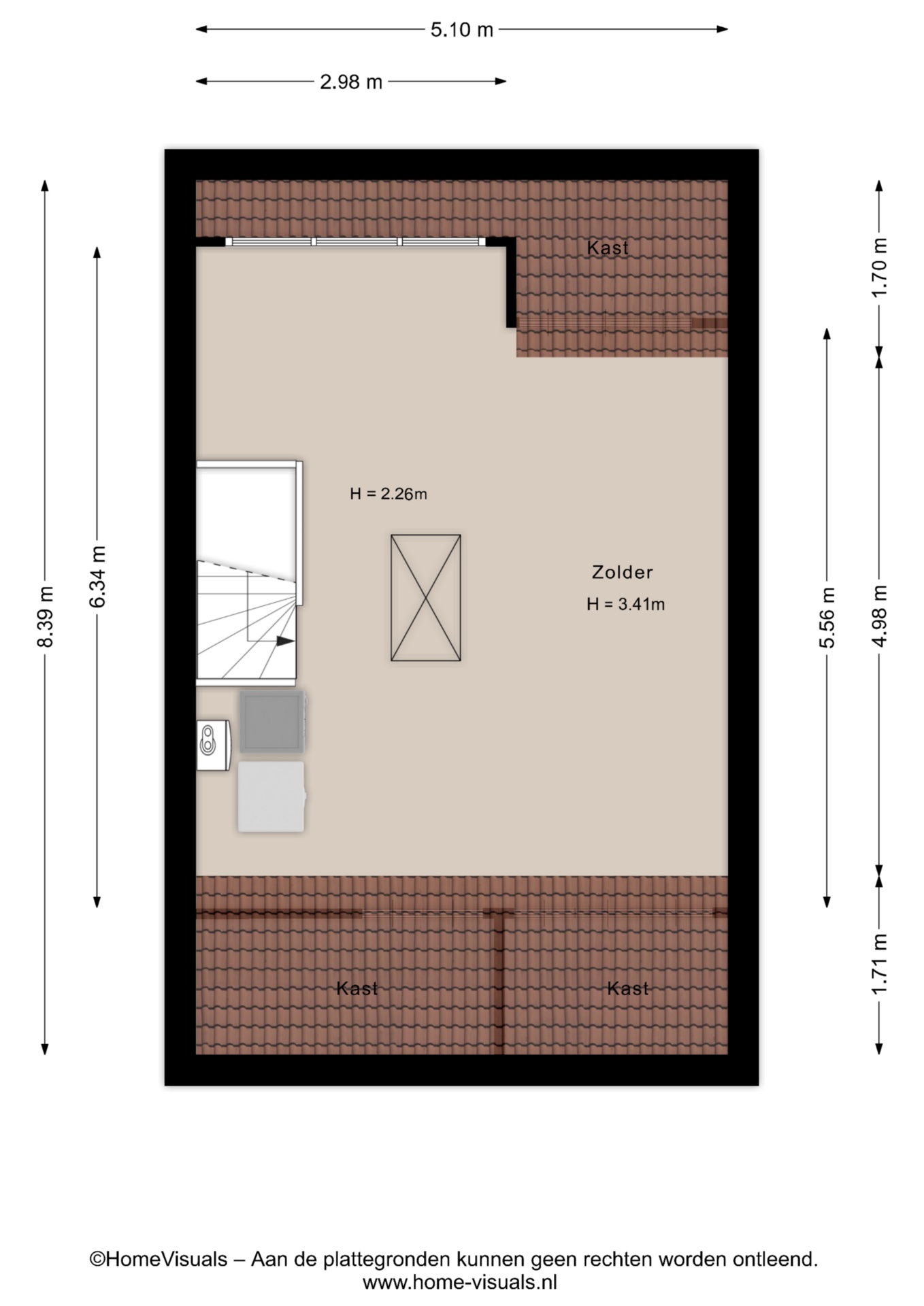 Via een vaste trap naar de tweede verdieping is er een mogelijkheid voor een vierde slaapkamer. Op de tweede verdieping is er tevens een vlizo trap waarmee de vliering te bereiken is