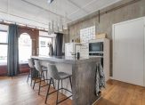 Via de originele winkelpui ā met etalageramen ā stap je deze unieke woning binnen. Diverse authentieke details herinneren nog aan de winkelhistorie. De industriĆ«le look is direct voelbaar.