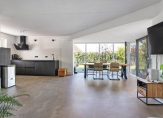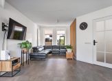De woonkamer is strak gestukt, heeft een grote glaspartij met openslaande deuren naar de tuin en is deels voorzien van vloerverwarming. De nieuwe pvc-vloer (2024) geeft de ruimte een moderne uitstraling. De moderne open keuken is geplaatst in 2021 en heeft een inductie kookplaat en is van alle gemakken voorzien.