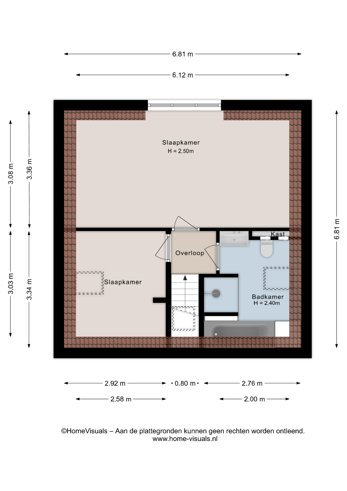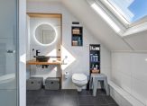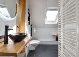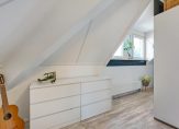 De overloop wordt mooi verlicht door een dakraam en geeft toegang tot twee slaapkamers. De grootste slaapkamer is voorzien van een dakkapel en is momenteel opgedeeld in een slaap- en werkgedeelte. Met een kleine ingreep is hier eenvoudig een extra slaapkamer te realiseren. De badkamer (2013) is netjes en compleet, met een ligbad, ruime inloopdouche, hangend toilet en wastafelmeubel!