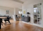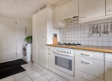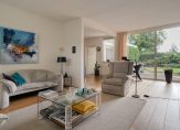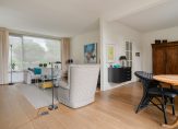 Bij binnenkomst ervaar je direct de verzorgde afwerking. De massief houten vloer en de grote raampartijen geven de woning een warme uitstraling en veel licht. Aan de achterzijde is de woning uitgebouwd, waardoor de keuken opvallend ruim en licht is. De grote raampartijen zorgen niet alleen voor een prettige hoeveelheid daglicht, maar ook voor een vrij uitzicht op de groene tuin.