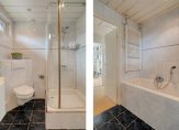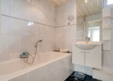 De eerste verdieping telt drie ruime slaapkamers, elk netjes afgewerkt en voorzien van kunststof kozijnen. De badkamer is praktisch ingedeeld en voorzien van een ligbad, douche en toilet.