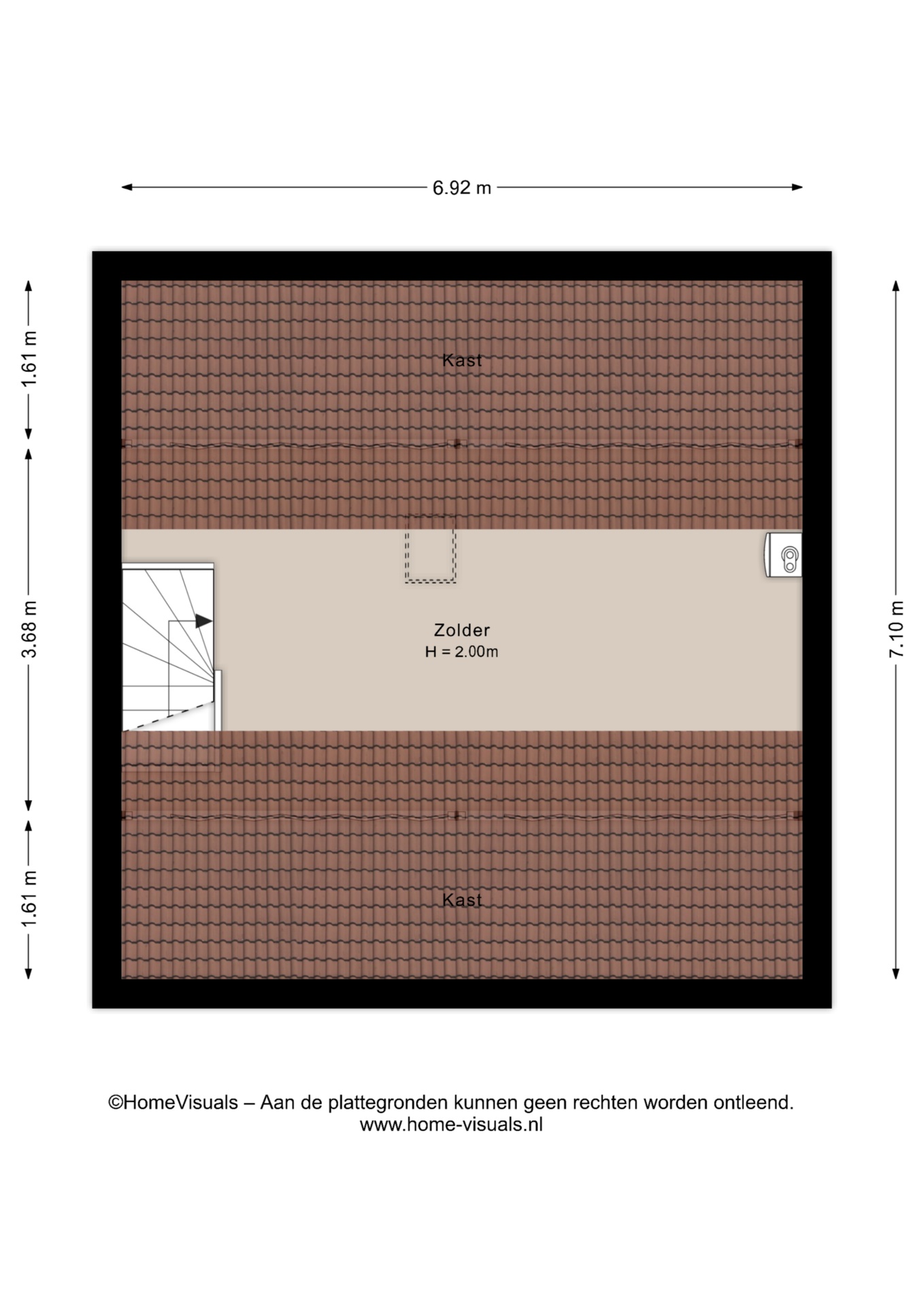 Via de vaste trap bereik je de zolderverdieping, die volop mogelijkheden biedt: van extra slaapkamer tot werk- of hobbyruimte.