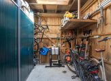 De achtertuin is praktisch ingedeeld met een ruime berging en een overkapping, ideaal voor het opslaan van spullen of voor gezellige buitenmomenten. De tuin is bereikbaar via het achterpad, waardoor je veel privacy hebt.