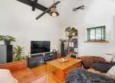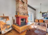 De woonkamer is ruim en heeft een sfeervolle open haard. Veder vind je hier een slaapkamer met openslaande deuren naar de achtertuin en een badkamer met tweede toilet, dubbele wastafel en inloopdouche.
